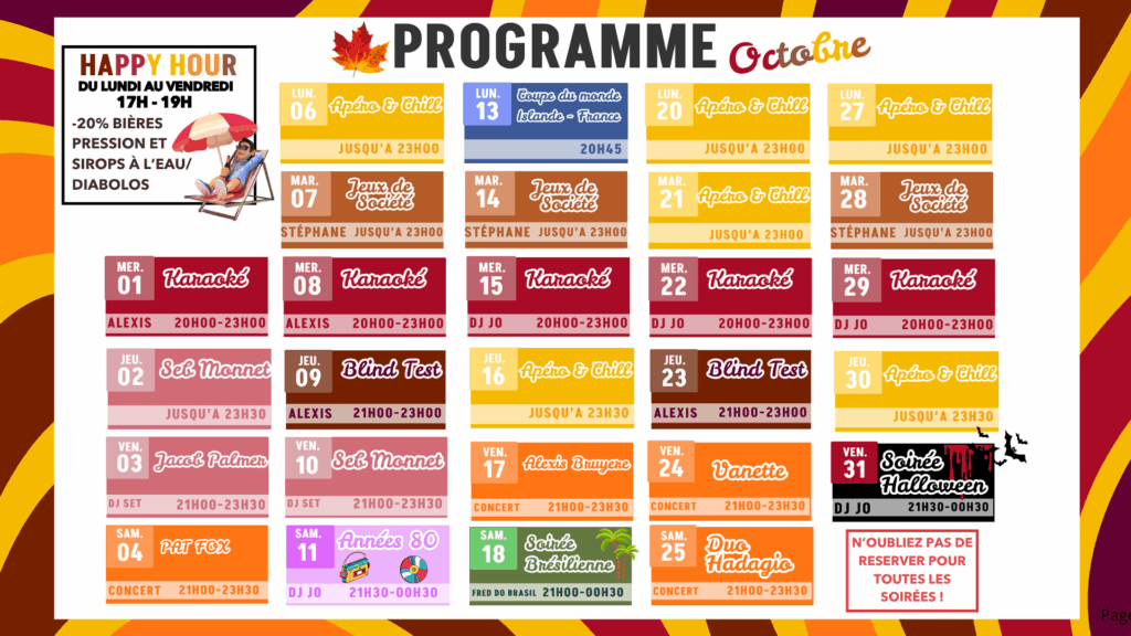 Chez Ô Jours Heureux, nous avons à coeur de vous proposons une quantité de soirées à thèmes.
